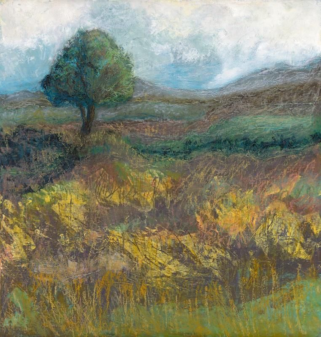 "Lone Tree, Black Mountains" - fine art print on archival paper of a Welsh Marches landscape painting by Helen Arthur: large 66cm square, small 44cm square. From an edition limited to 50 prints. Free shipping in UK.